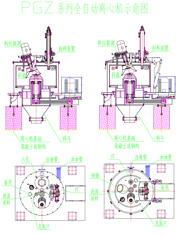 4.布料方式选择:a斜盘布料方式,布料及洗涤更加均匀合理, 避免因布料不均引起震动。b进料管进料(可设置分层进料),水洗管洗涤。